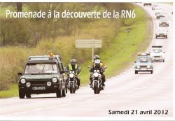 Une quarantaine de véhicules étaient présents pour cette randonnée de soutien au projet de réhabilitation de l'ancienne route nationale 6 dans le secteur Arnay le duc entre Saulieu et La Rochepot, de façon à continuer ce qui a été fait sur la partie Morvan il y a quelques années. Avec moi, comme copilote, pour ouvrir la route avec l'escorte des motos des ch'tis revenus cette année pour le salon, Thierry DUBOIS dessinateur humoristique sur l'automobile et auteur de nombreux ouvrages sur la RN6 RN7 sur les routiers et sur la sauvegarde du patrimoine qui borde ces anciennes routes nationales. C'est sous une pluie battante glaciale que nous avons roulés tranquillement direction Bel air puis après un cours arrêt, direction les petites routes et la mairie de Jours en vaux ou la municipalité nous attendais pour un pot de bienvenue. Ensuite direction salle des fêtes de Lacanche ou le maire Pierre Gobbo nous accueillais avec une petite collation réconfortante. La pluie avait cessé pour le retour sur Arnay .Jean Pierre nous y attendais pour partager le verre de l'amitié avec tout les participants.