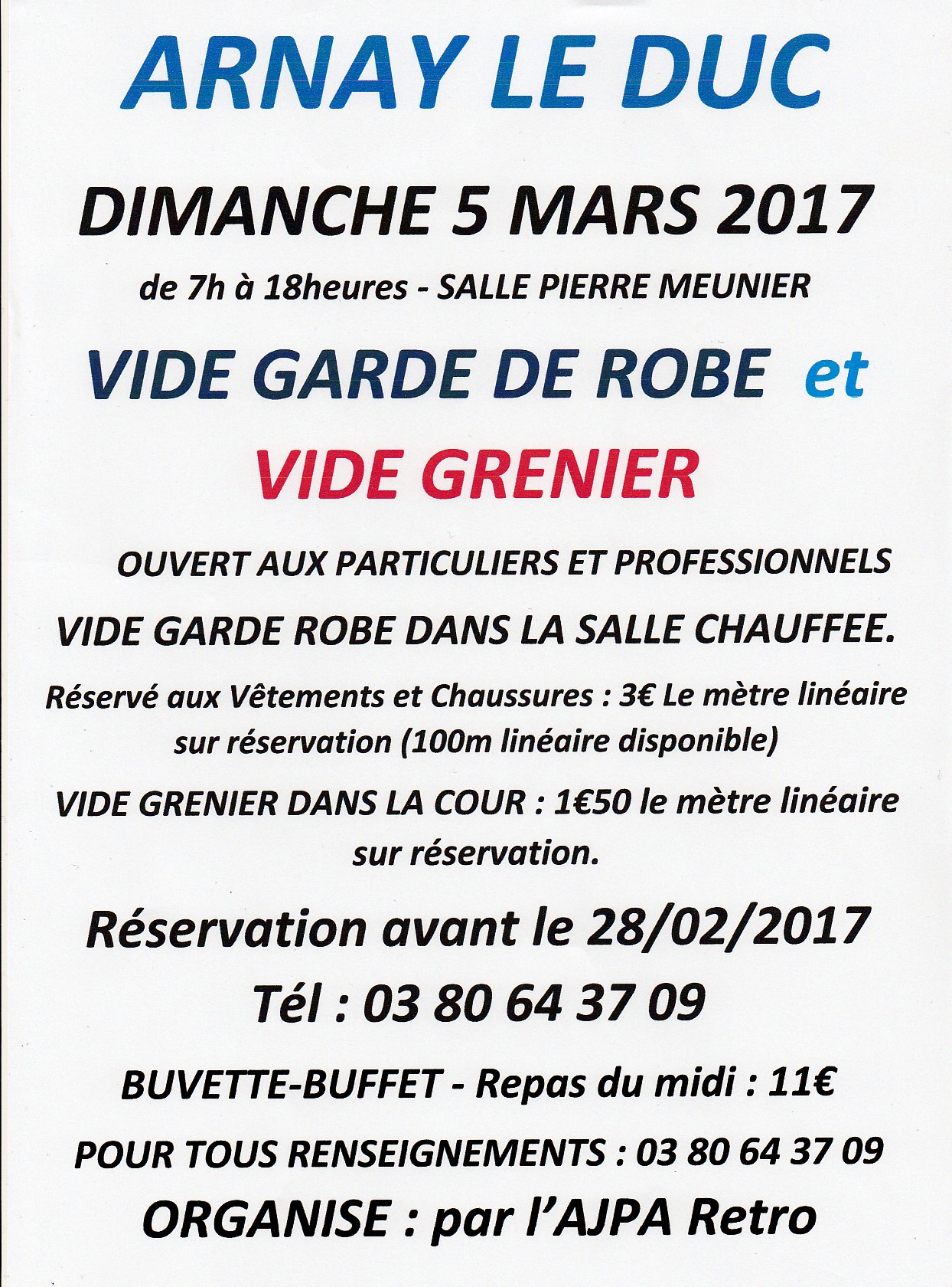 Vide garde robe et vide grenier salle pierre Meunier Arnay le duc le 5 mars 2017